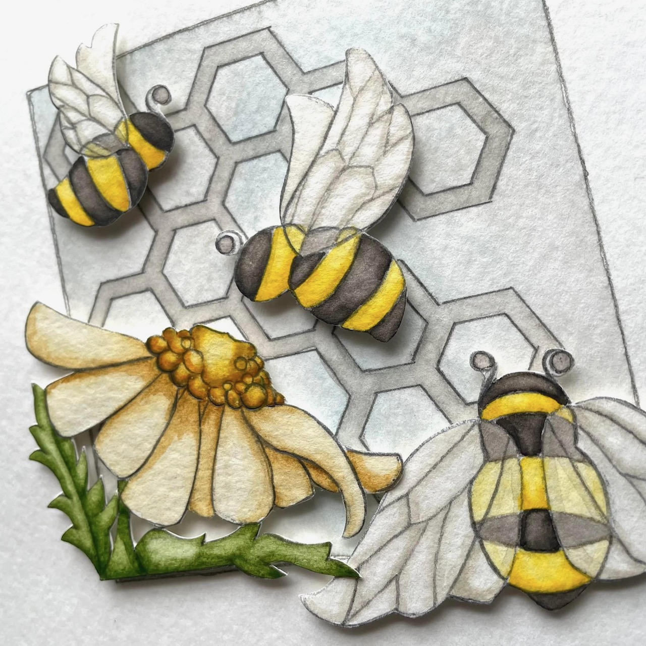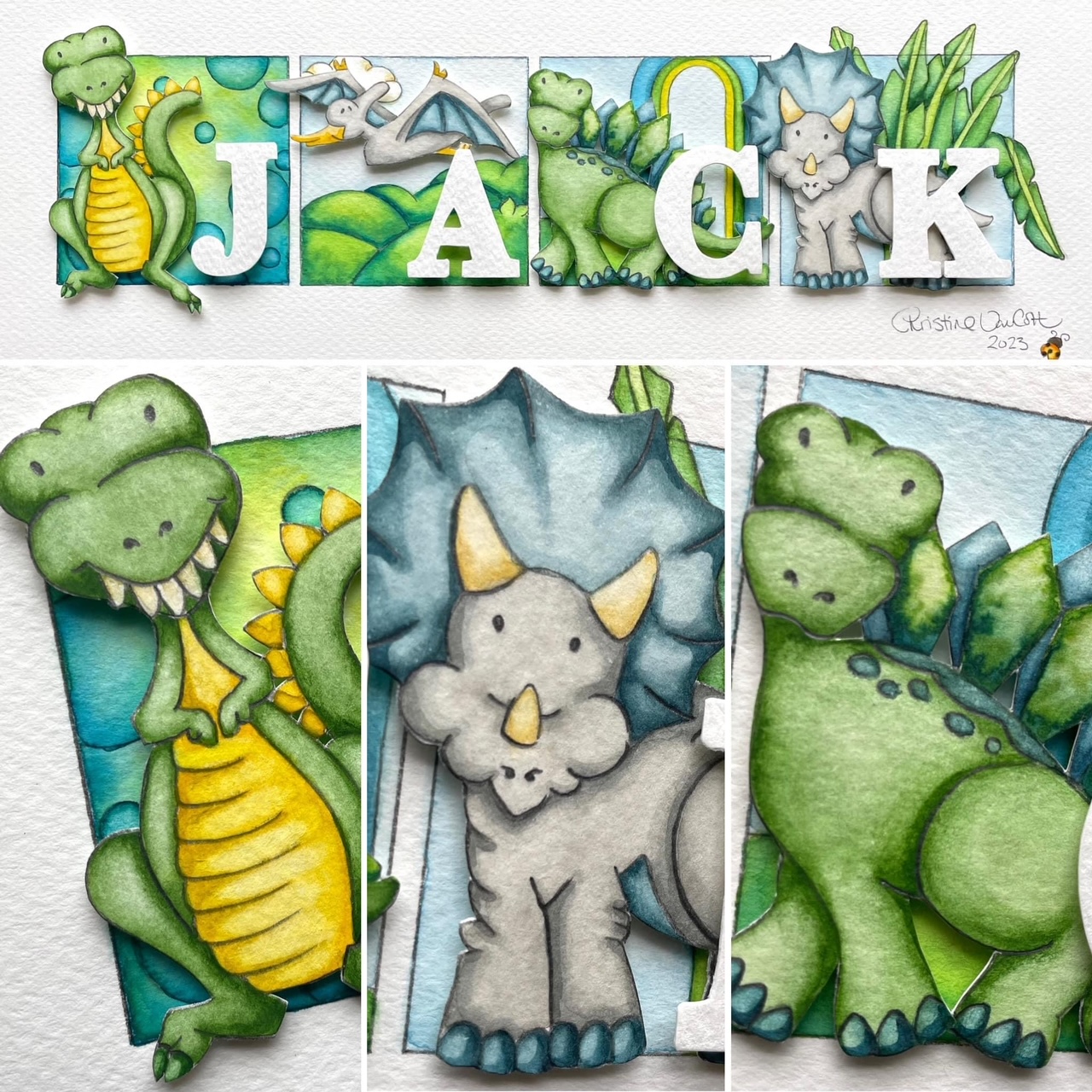 Three 6×6″ original dimensional watercolors