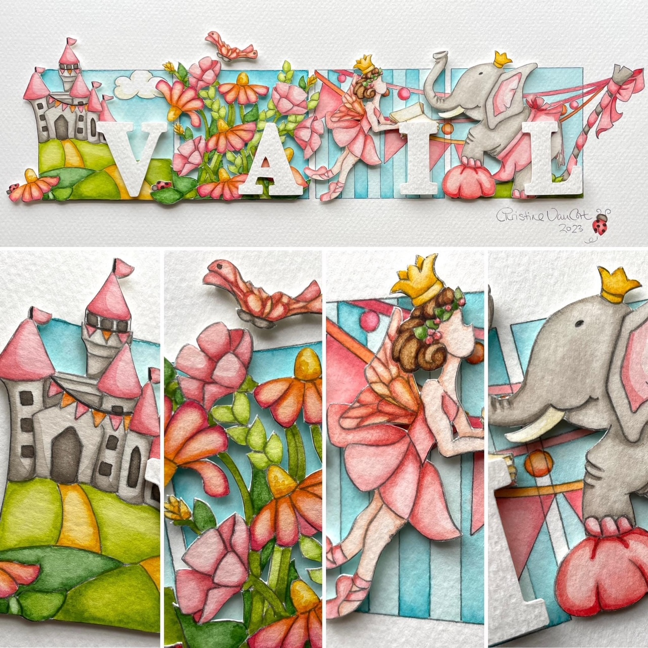 6×19″ original dimensional watercolor