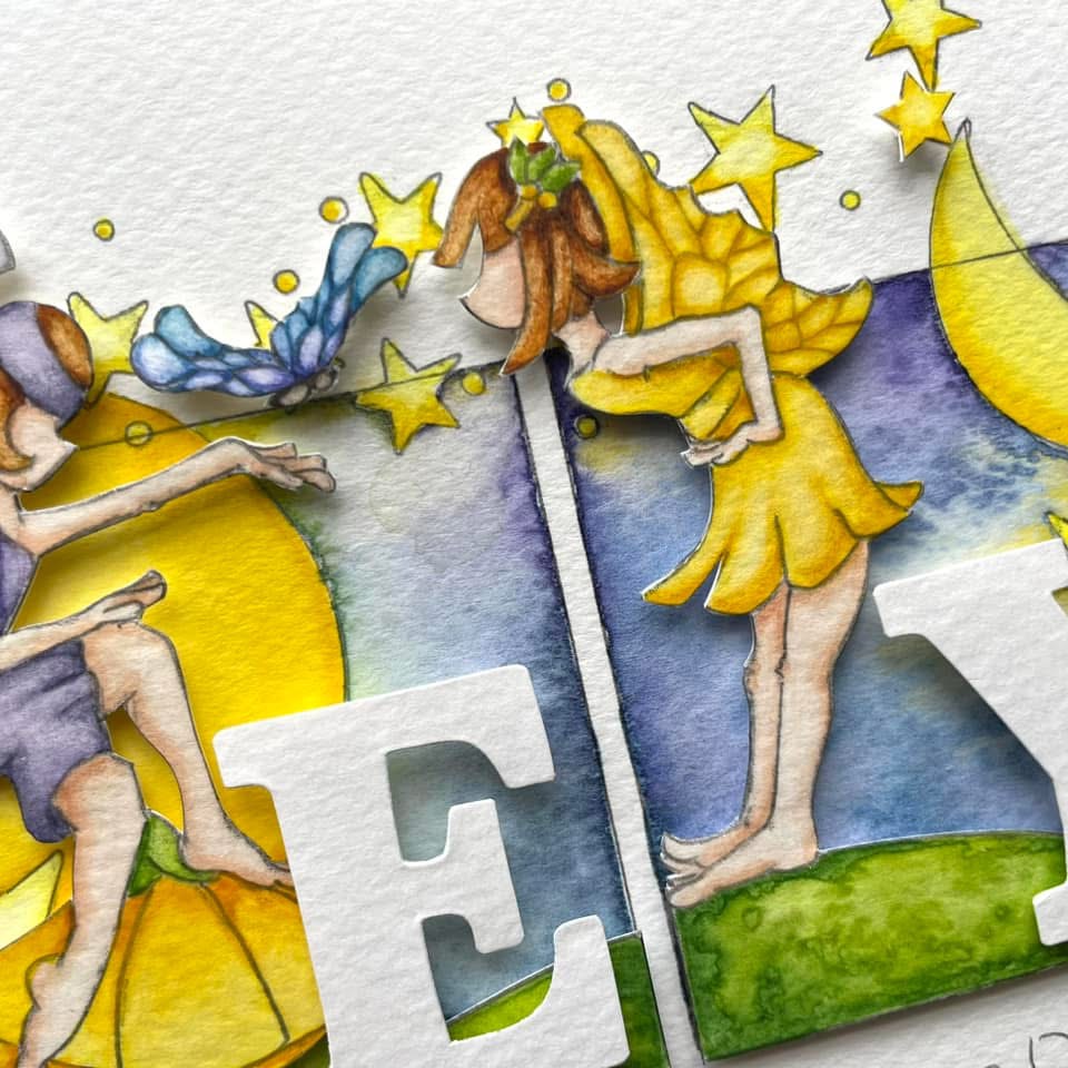 The first of a duet of sweet fairies and tiny enchanting creatures to complete a soft, magical nursery for newborn twins.