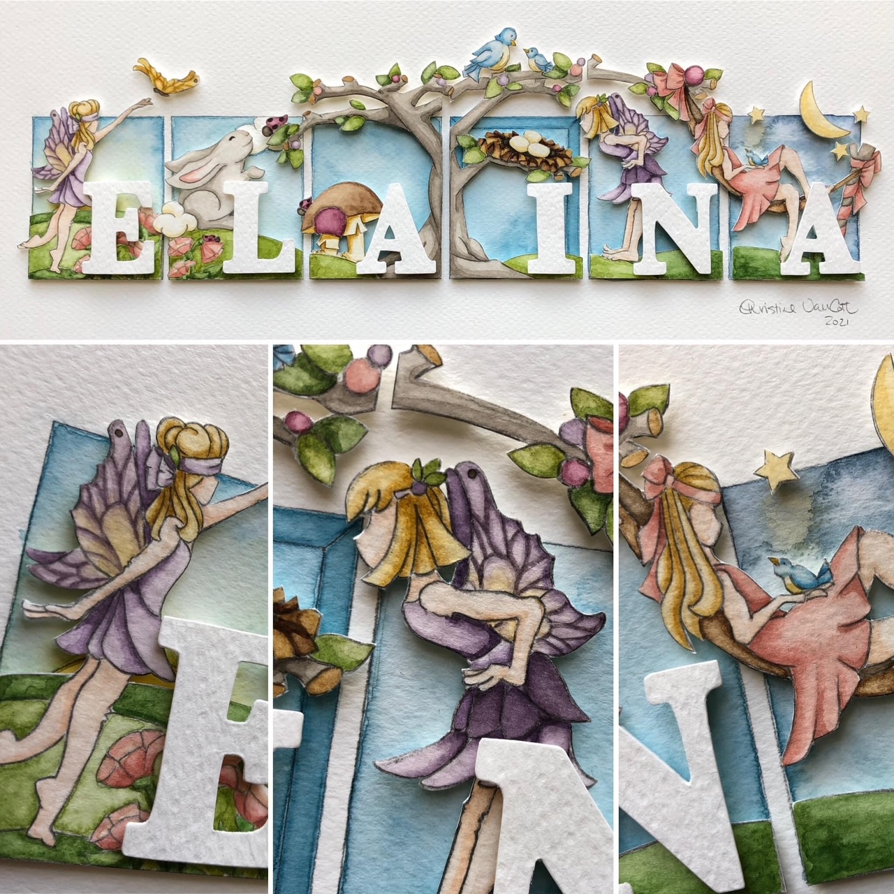 Four phases of the moon in this special, swirling, magical piece for a newborn girl.