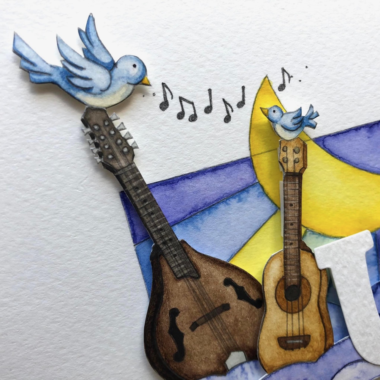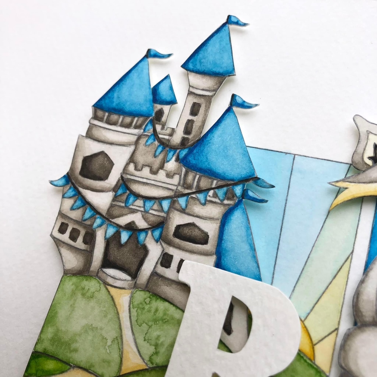 Bright and whimsical dragons & treats, sweet pea blossoms, ladybugs & a regal lion. This piece includes a special not to this young girl’s name…a Taylor guitar!