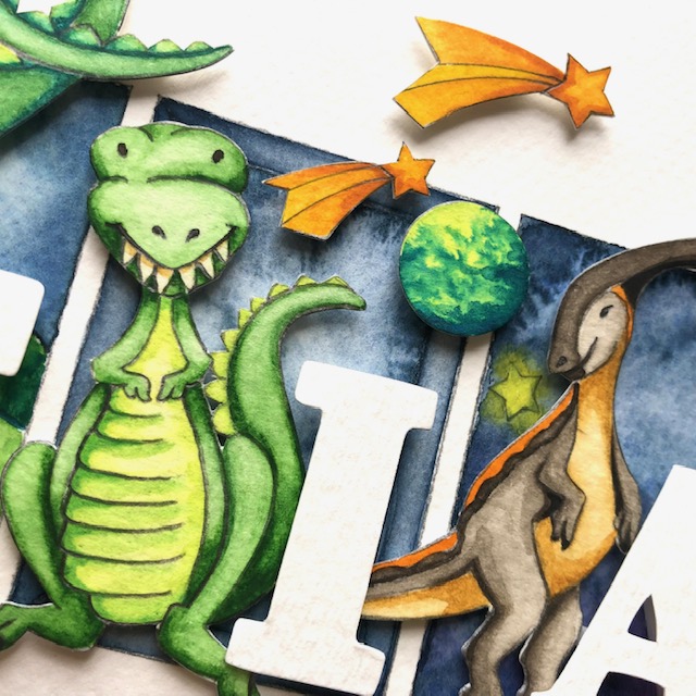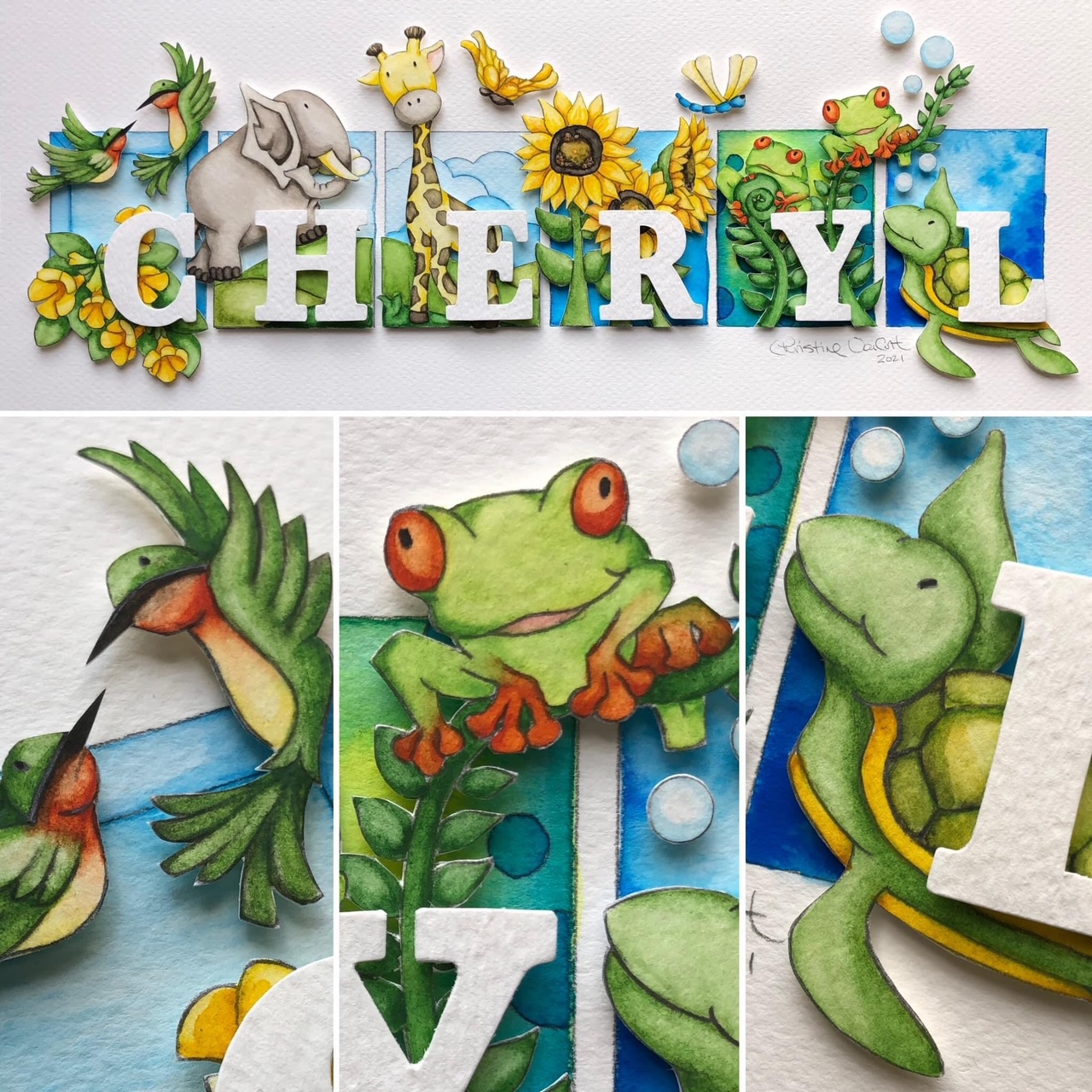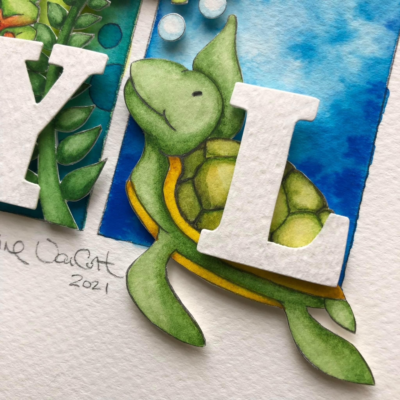 Curious & quirky critters in bright, bold greens, blues & yellow. This was a one-of-a-kind gift create especially for a special animal lover / turtle rescuer…so many adorable expressions!