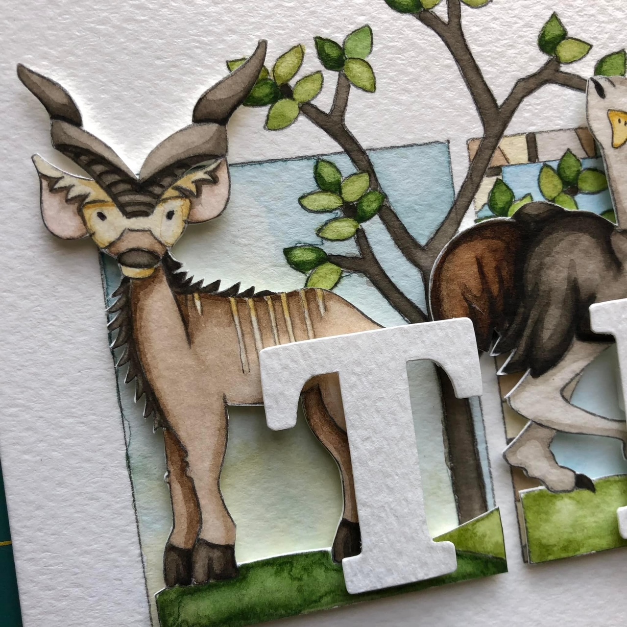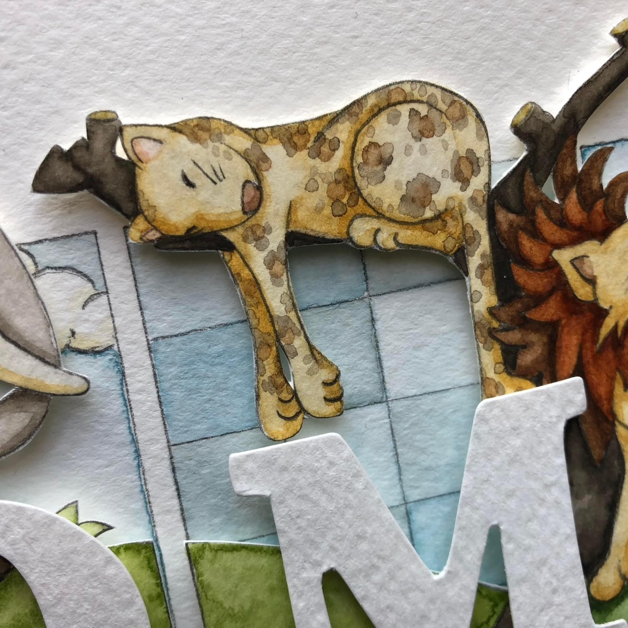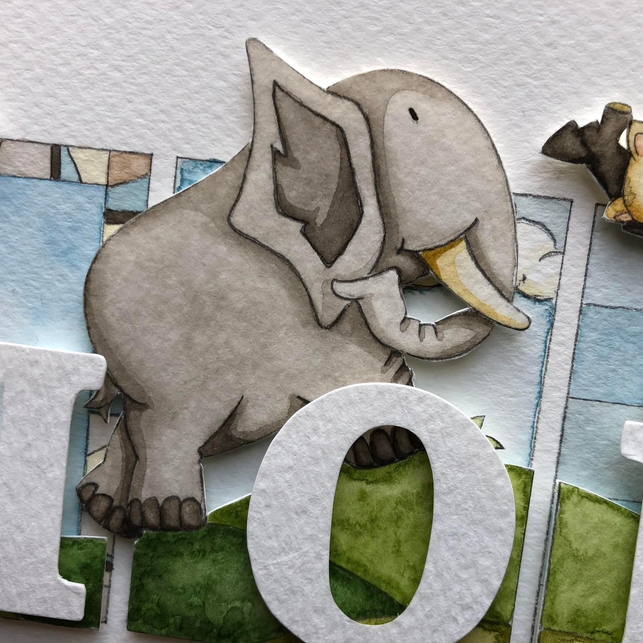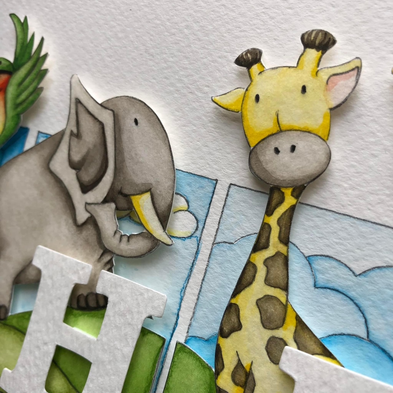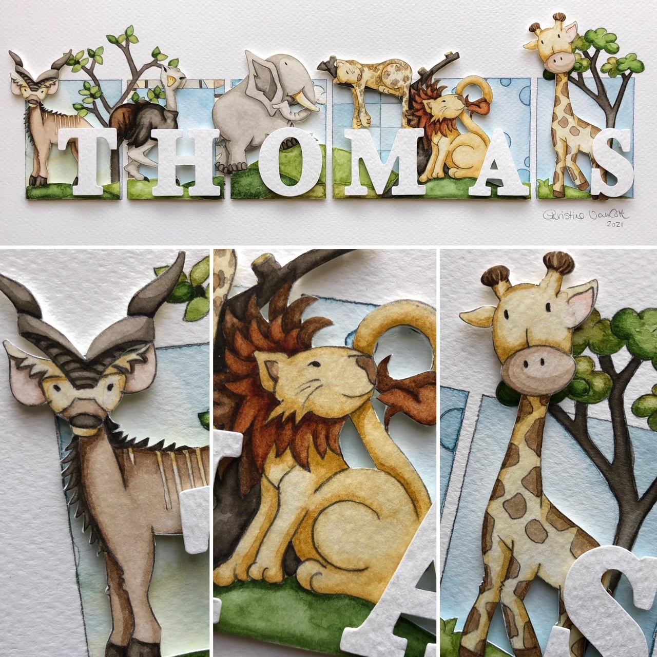 A calm safari scene full of my favorite playful animals for a baby boy.