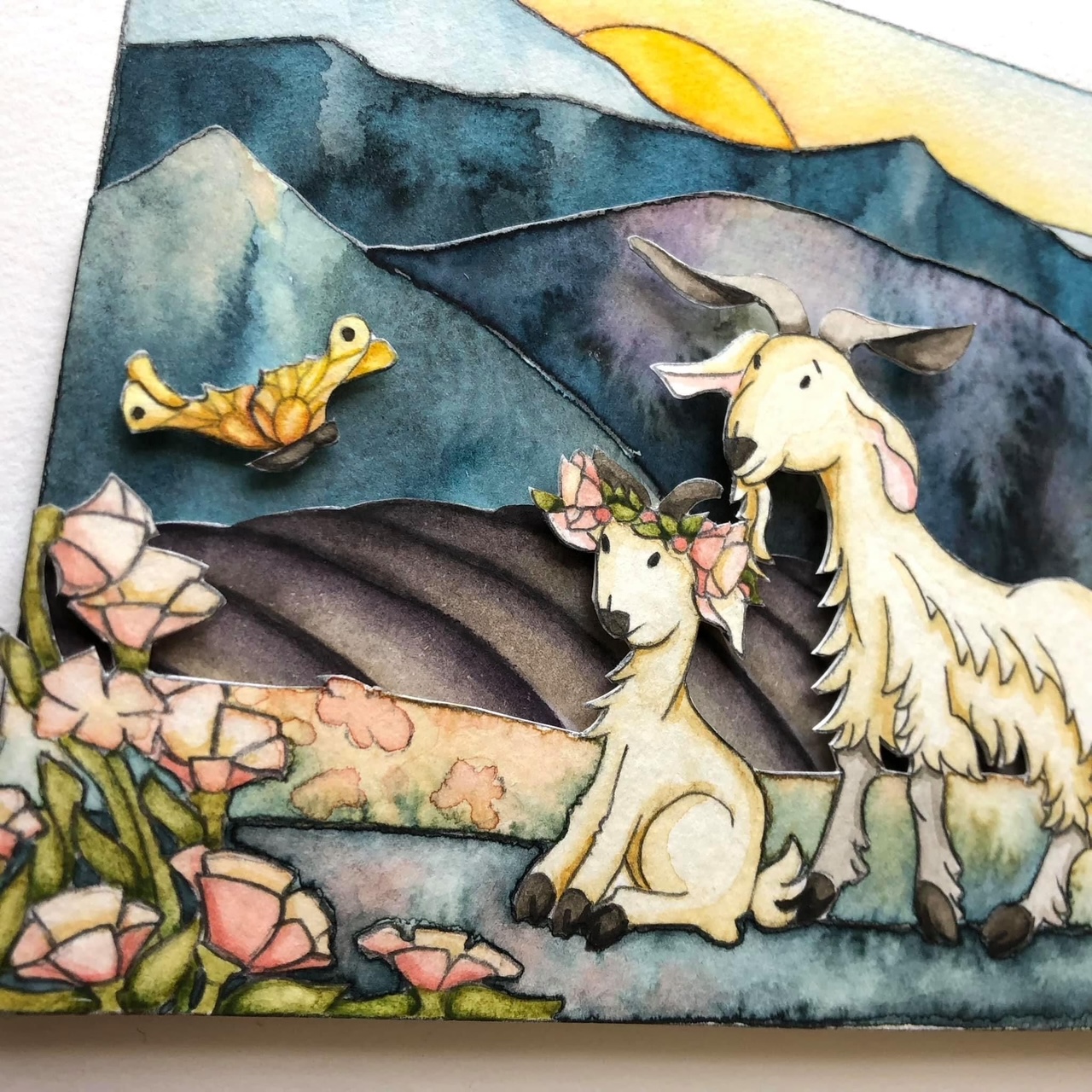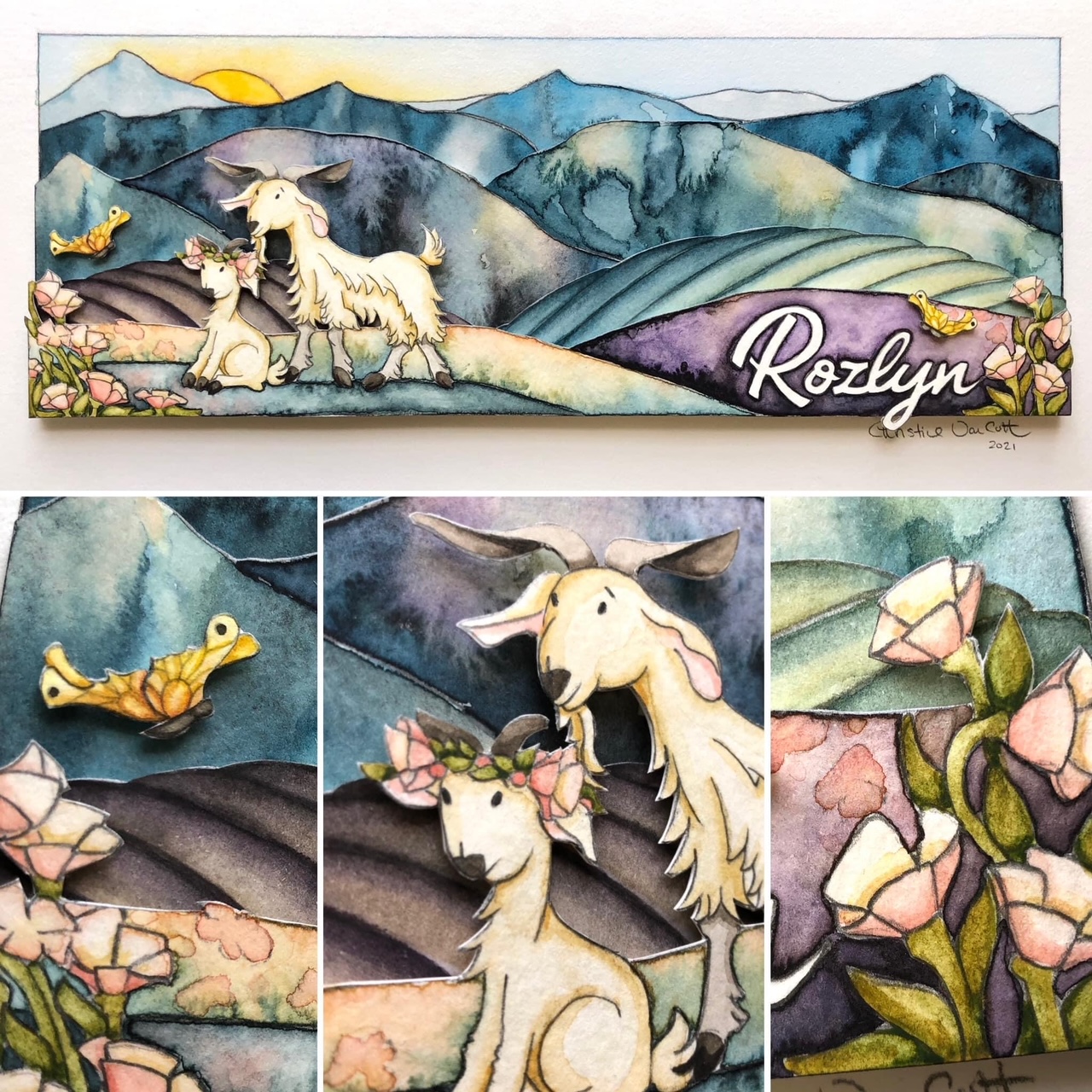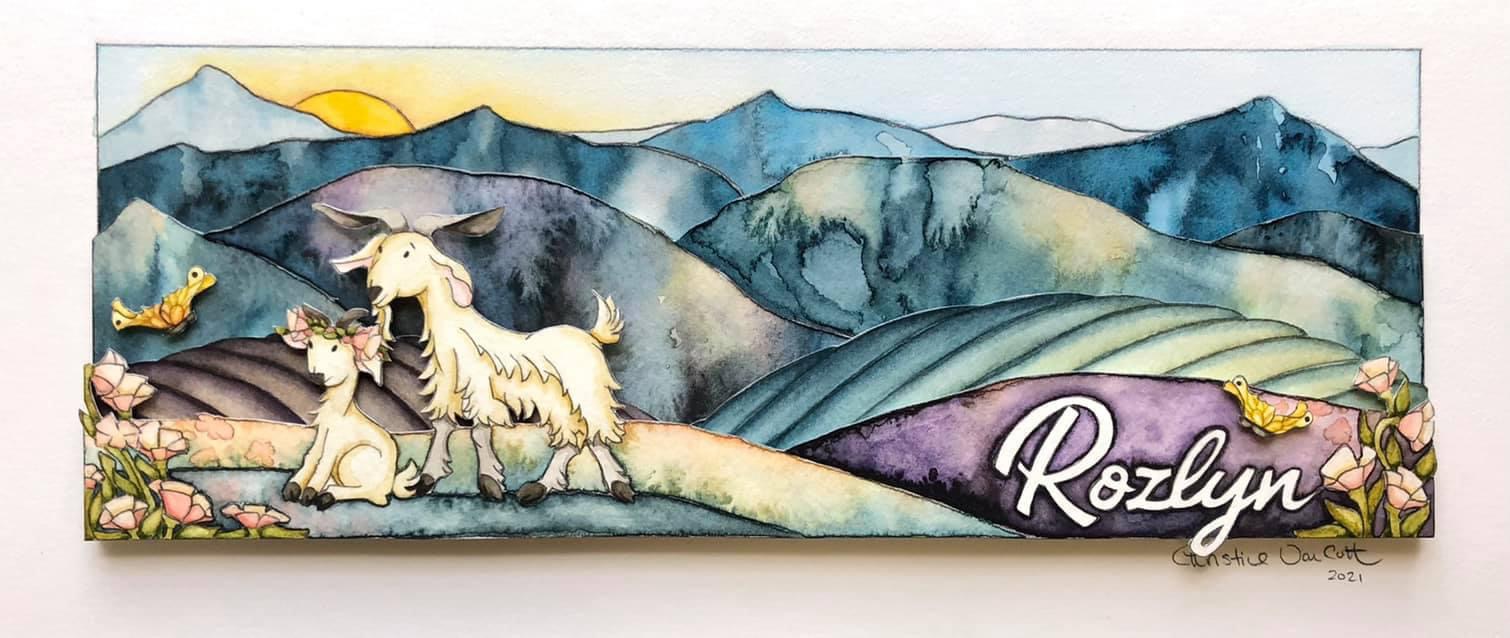 I honestly wasn’t sure how goats would look on a piece for a baby girl. Turns out, they’re completely adorable! I’m loving this sweet Blue Ridge Mountain scene –
