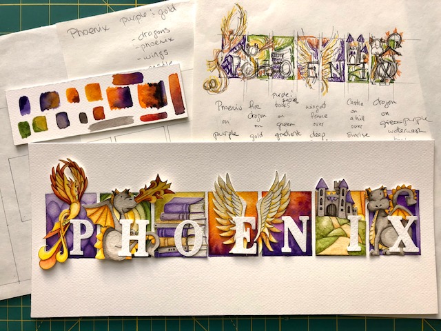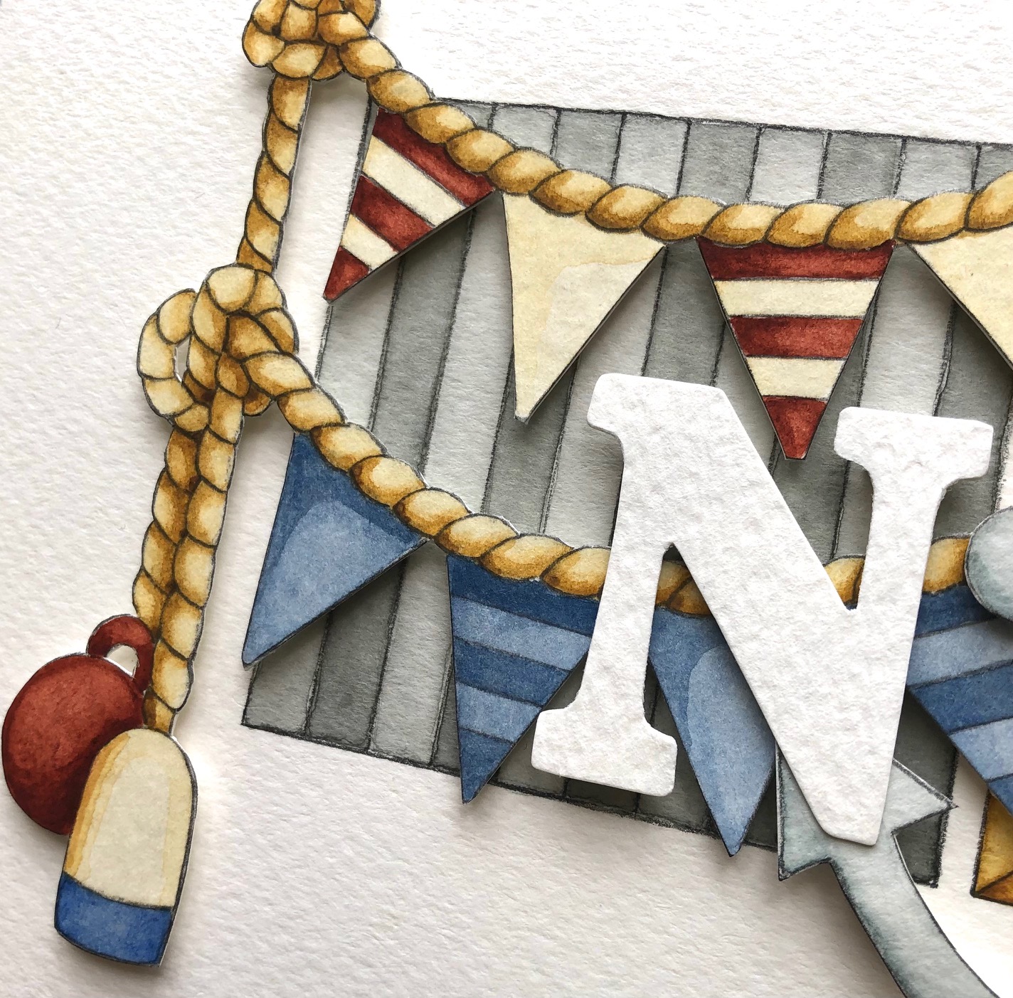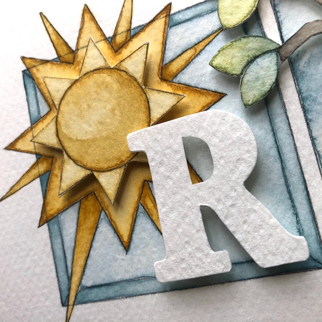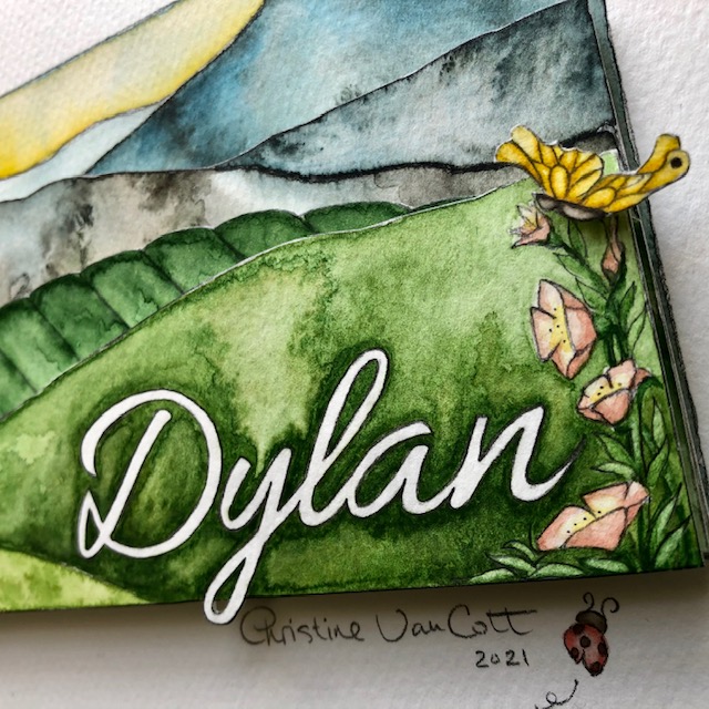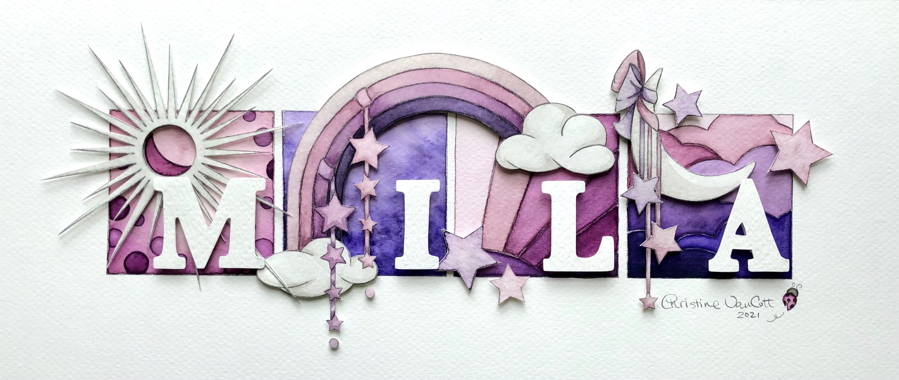 Creative challenge accepted! Recreate a sweet Blue Ridge Mountains theme for a newborn girl using the color palette of my lovely artist friend Heather Davis‘ work. This piece was created to coordinate with Heather’s encaustic work “Pompeii III” – see it here: https://www.heatherdavis.studio/shop/pompeii-series-iii-encaustic-painting/