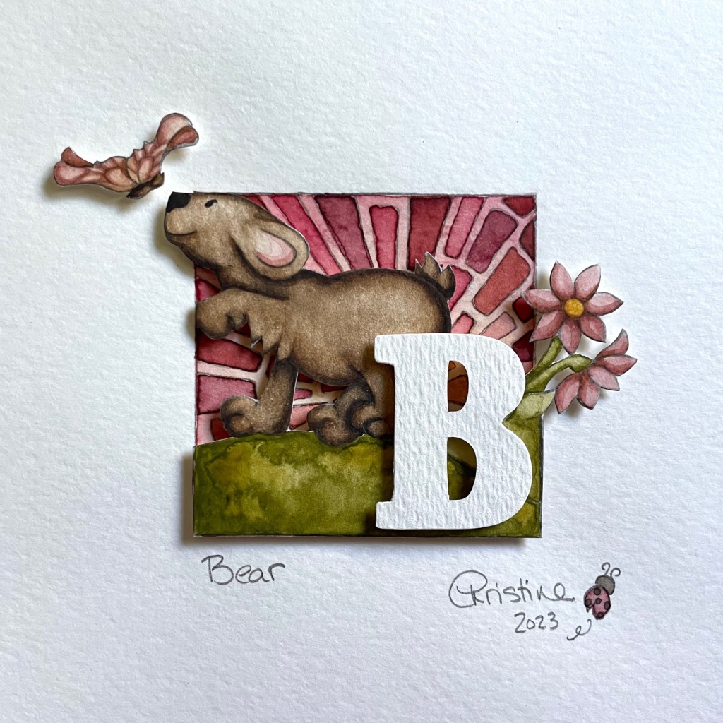 This charming bear cub was painted in layers, then hand-cut and hand-layered for a 3-dimensional effect.