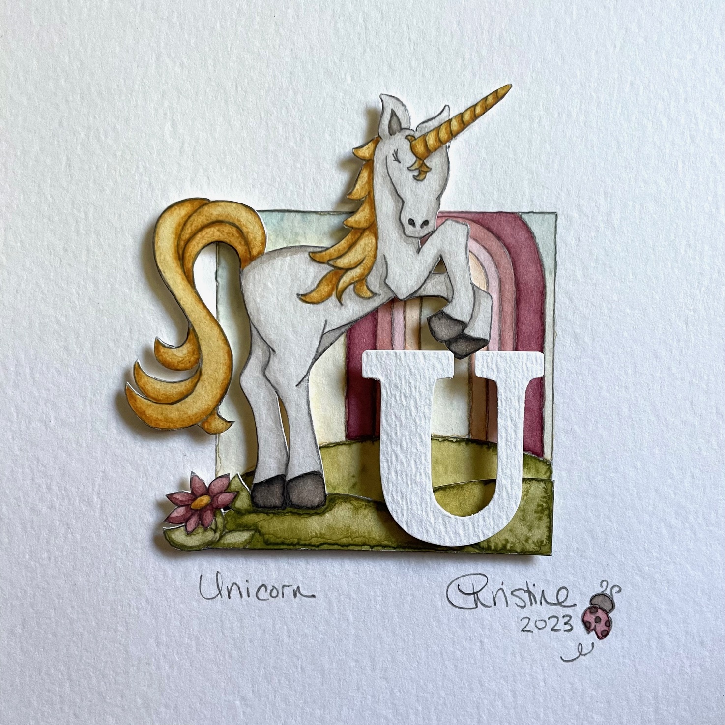 This magical unicorn was painted in layers, then hand-cut and hand-layered for a 3-dimensional effect.
